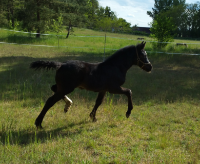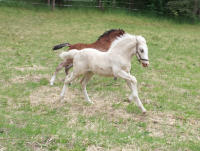 Jamie ihr Fohlen von 2017. Ein sehr schönes Stutfohlen in toller Dunkelpalomino Farbe. Ein Fohlen mit tollen Fundament und Bewegungen. Prämienfohlen und Sieger bei den Ponys.