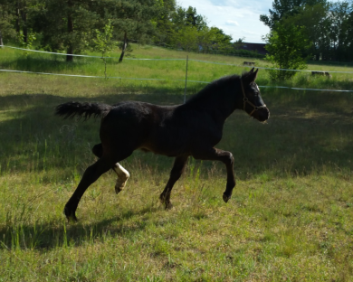 Wunderschönes Stutfohlen in dunkler Jacke. Mit super Abstammung und traumhaften Bewegungen.
