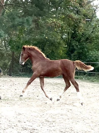 Wunderschönes kräftiges , großes Stutfohlen mit tollen Bewegungen. Aus allerbester Anpaarung, Mutti und Vati sind beide top geritten und gefahren . Beste Voraussetzung um ein tolles Sport- oder Freizeitpferd zu werden.